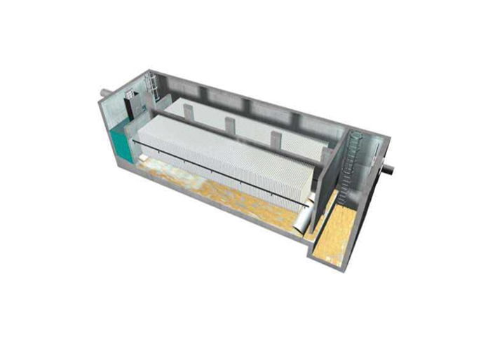 After the treatment area is emptied, the inclined plate returns to its natural vertical state, and the particles accumulated on it slide down to the bottom of the pool;
